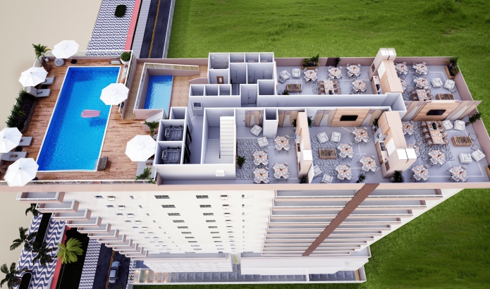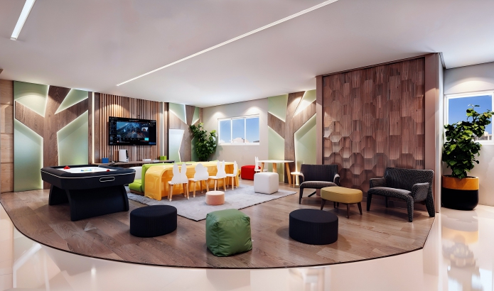 Lazer Completo no Mezanino e na Cobertura Contendo: